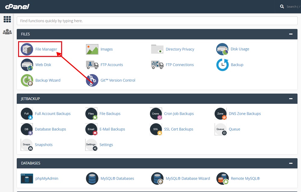 Access your Cpanel account and login in with your credentials. Then go to File Manager.